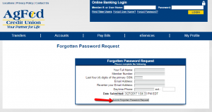 Step 2 (Password): Fill in the boxes provided with the required information including your: full name, member number, last four digits of your SSN, email address and your daytime phone. Press ‘Submit Forgotten Password Request’ button to forward your request and get assistance with the password reset.
