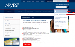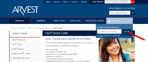 Step 1: Open the card’s main webpage and press the ‘LOG IN TO…’ button. A series of options will pop-up in a small window right under the login button you just pressed. Click on the Arvest Online Banking option to open the login window.