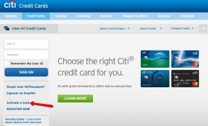 Step 1: Visit the Citi credit cards’ webpage and press the ‘Activate a Card’ link as shown in the picture below.