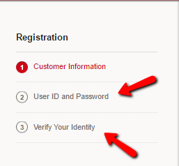 Step 3: On the next page you will have to create a User ID and a Password as well as to verify your identity by entering both your account number and your social security number.