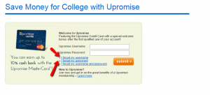 Step 2: Enter in the required fields your Upromise Username and Upromise Password and press ‘submit.’